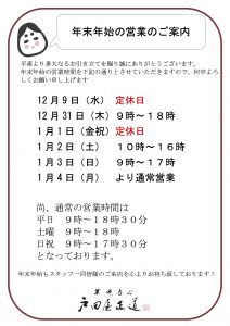 年末年始営業時間2020年